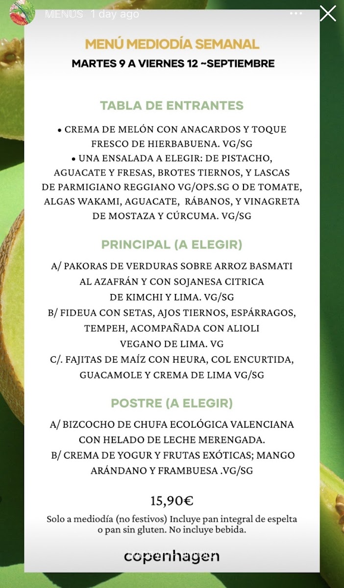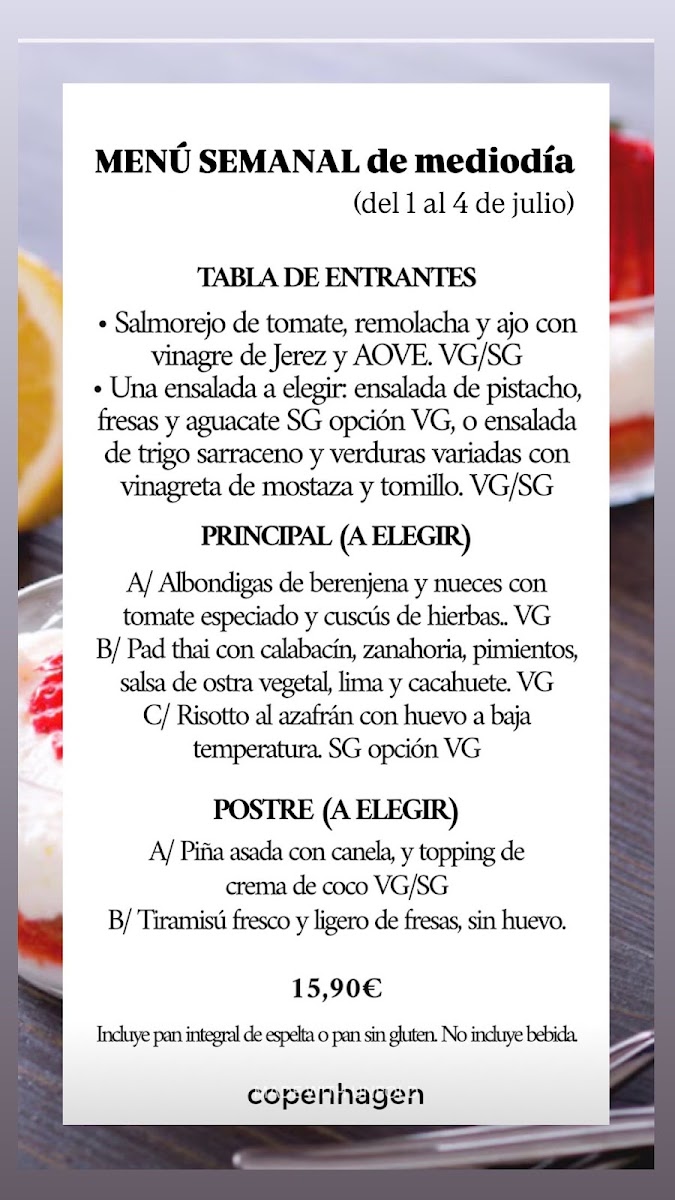 Welcome to Restaurant Copenhagen, a vegetarian haven nestled in the heart of Valencia. With a delightful menu curated for health-conscious diners, this vibrant eatery offers an array of mouthwatering dishes that celebrate seasonal ingredients. The Ensalada De Fresa Y Pistacho combines fresh strawberries and creamy Parmigiano Reggiano, while the artisanal Fiocchi De Pera Y Queso enchants with pear and Italian cheeses nestled in pasta, elevated by seasonal mushrooms and pesto. For those craving a twist, the Tacos Jackfruit provide a savory vegan option bursting with flavor. Diners praise the attentive service, with staff eager to offer recommendations and ensure a memorable experience. From the charming ambiance to the creative dishes, Restaurant Copenhagen is a must-visit for vegetarians and food lovers alike, promising culinary delights that even non-vegetarians will relish.